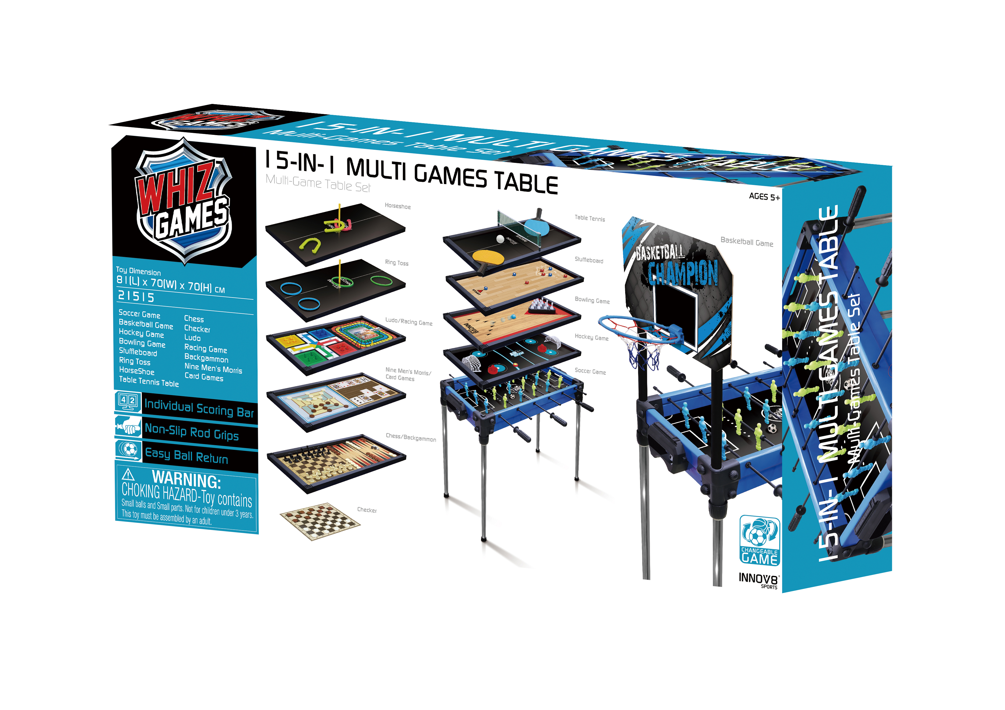 15 in 1 Multi Games Table - 32 inches, with Long Metal Legs