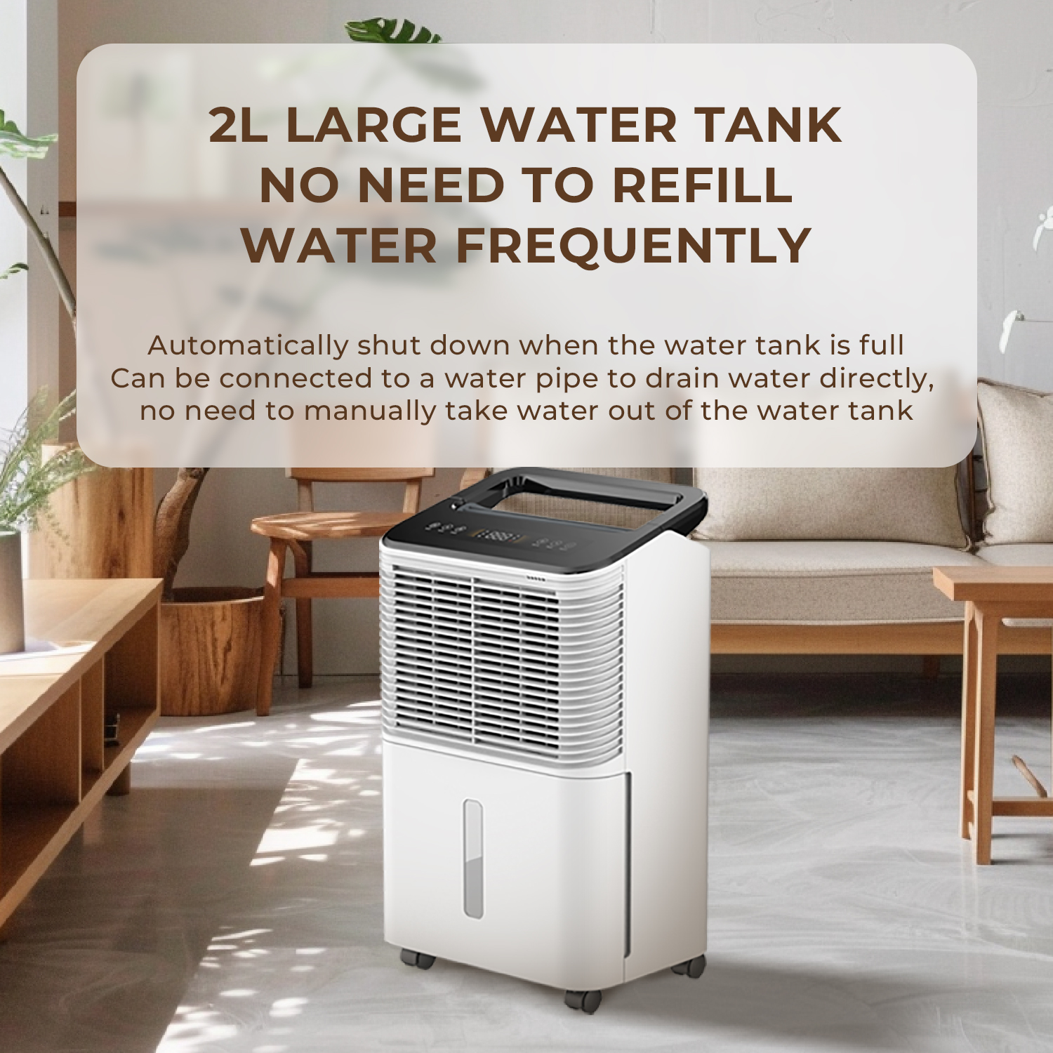 Efficient and user-friendly, the KN-D7540 dehumidifier is designed to improve indoor air quality by effectively removing excess moisture. With a powerful 300W motor, it can dehumidify up to 16 liters of water per day, suitable for spaces up to 32m³.