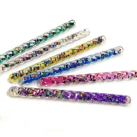 The BA-1102 Spiral Glitter Wand is a beautifully crafted sensory toy designed to delight and calm with every turn. This slim, mini wand fits comfortably in hands of all ages—making it an excellent fidget toy for kids, teens, and adults alike. Filled with vibrant one-tone colored sand and shaped glitter, it creates a relaxing visual dance of flowing color and sparkle.
