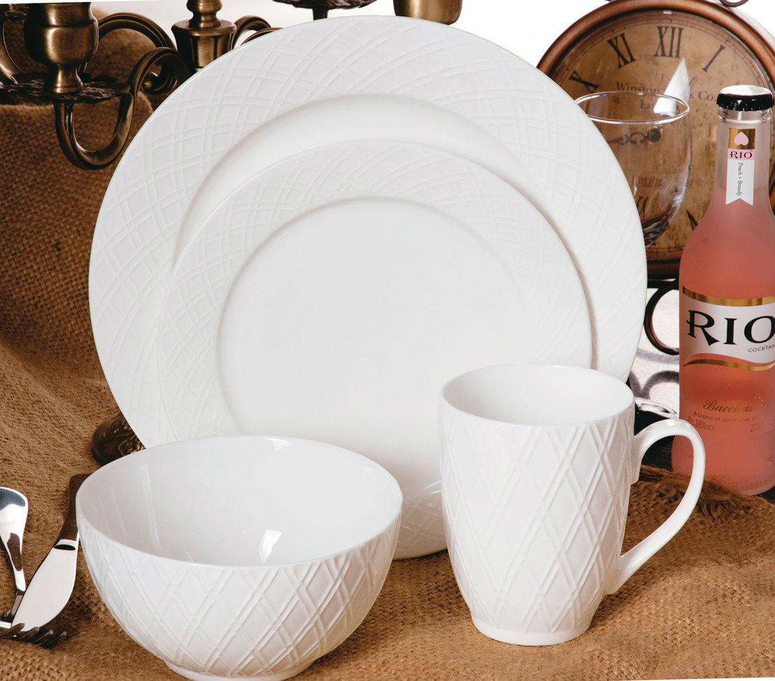 16pc Bone China Embossed Dinner Set