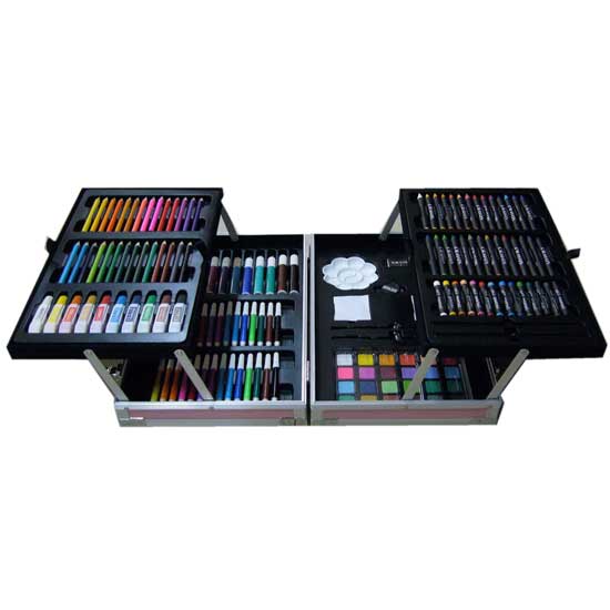 Featured is an aluminum box art set including different types of artist tools such as color pencils, oil pastels etc. The box is excellently divided into several compartments for easy storage. The art set is especially excellent for your crafts work.
