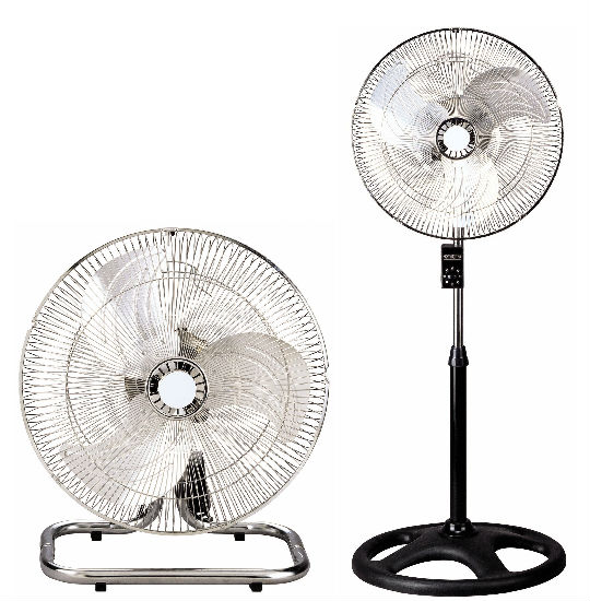 18" industrial stand & floor fan, 3 speeds, 120pcs radial grill, round steer base with heavy attachment.