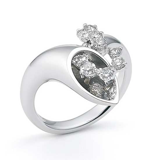 This delicate ring features polished 18K white gold construction. It is adorned with high-sheen diamonds for decorative touch. The ring is an ideal accessory to complement your outfit.