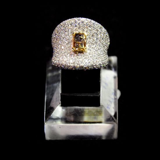 This enchanting ladies' ring is characterized by a thick band, which is adorned by admirable, sparkling diamonds all over. Employed with meticulous craftsmanship, each piece of diamond dazzles and shines proudly in all directions. This 18K diamond ring is the perfect one to capture a lady's heart.