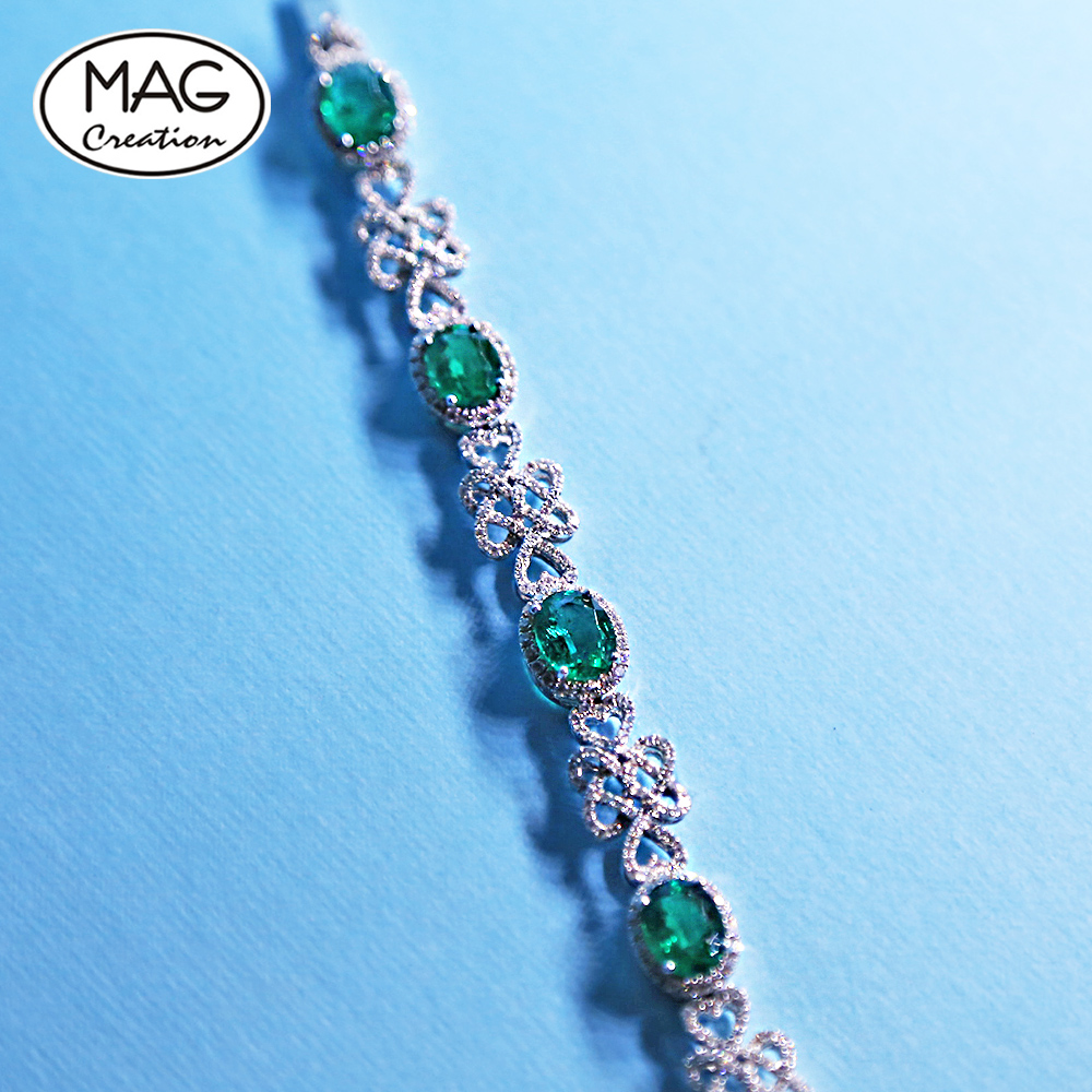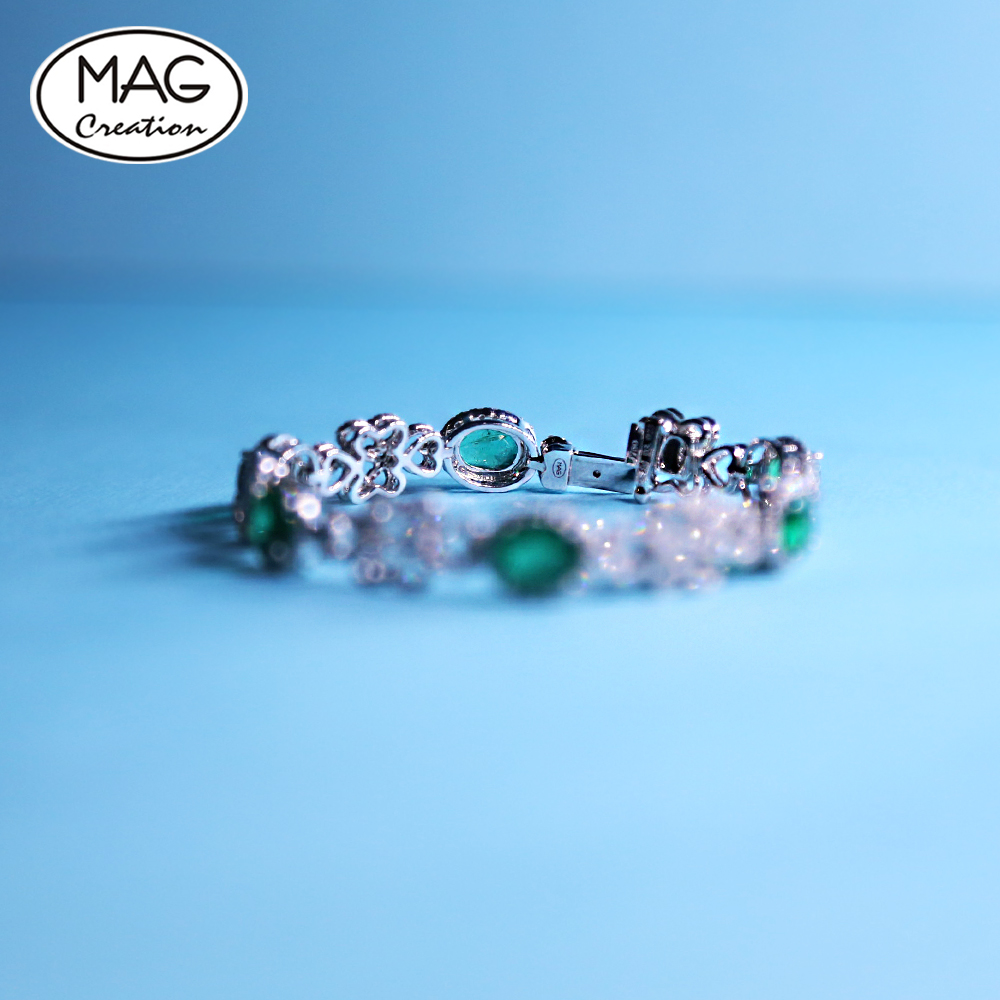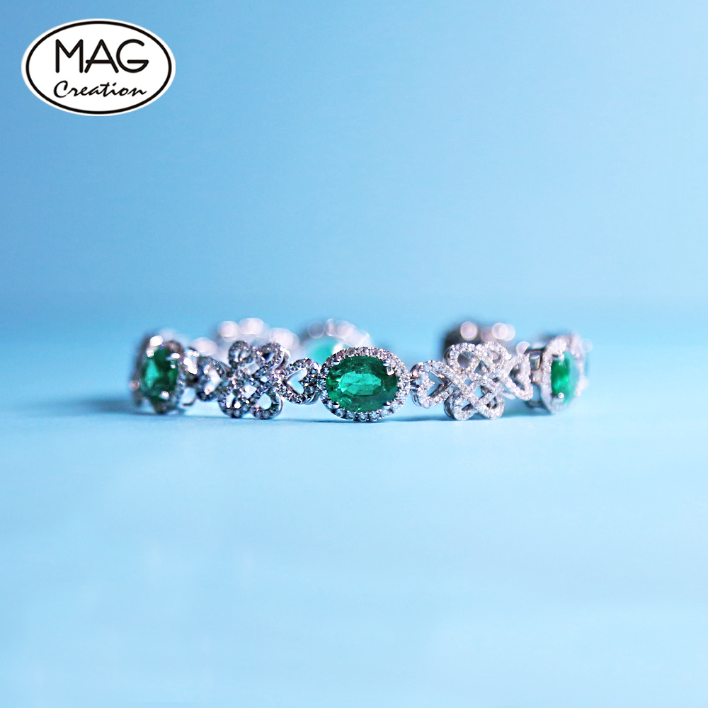 Elegant Special China Knots Design 18K Gold Diamond HALO 9.0ct Oval Cut Emerald (price not included) Diamond Bracelet