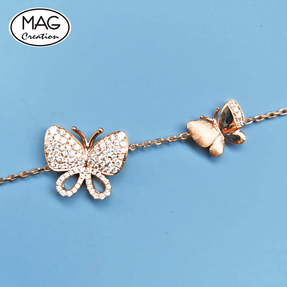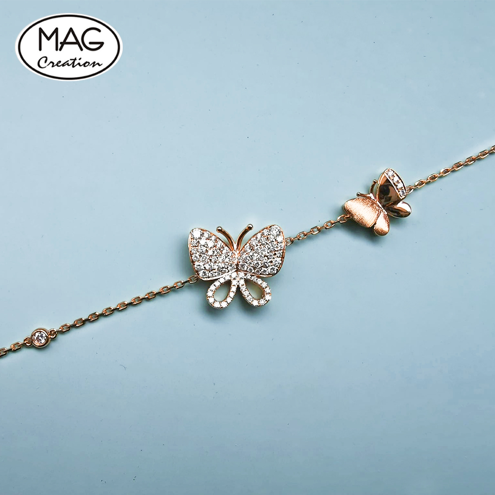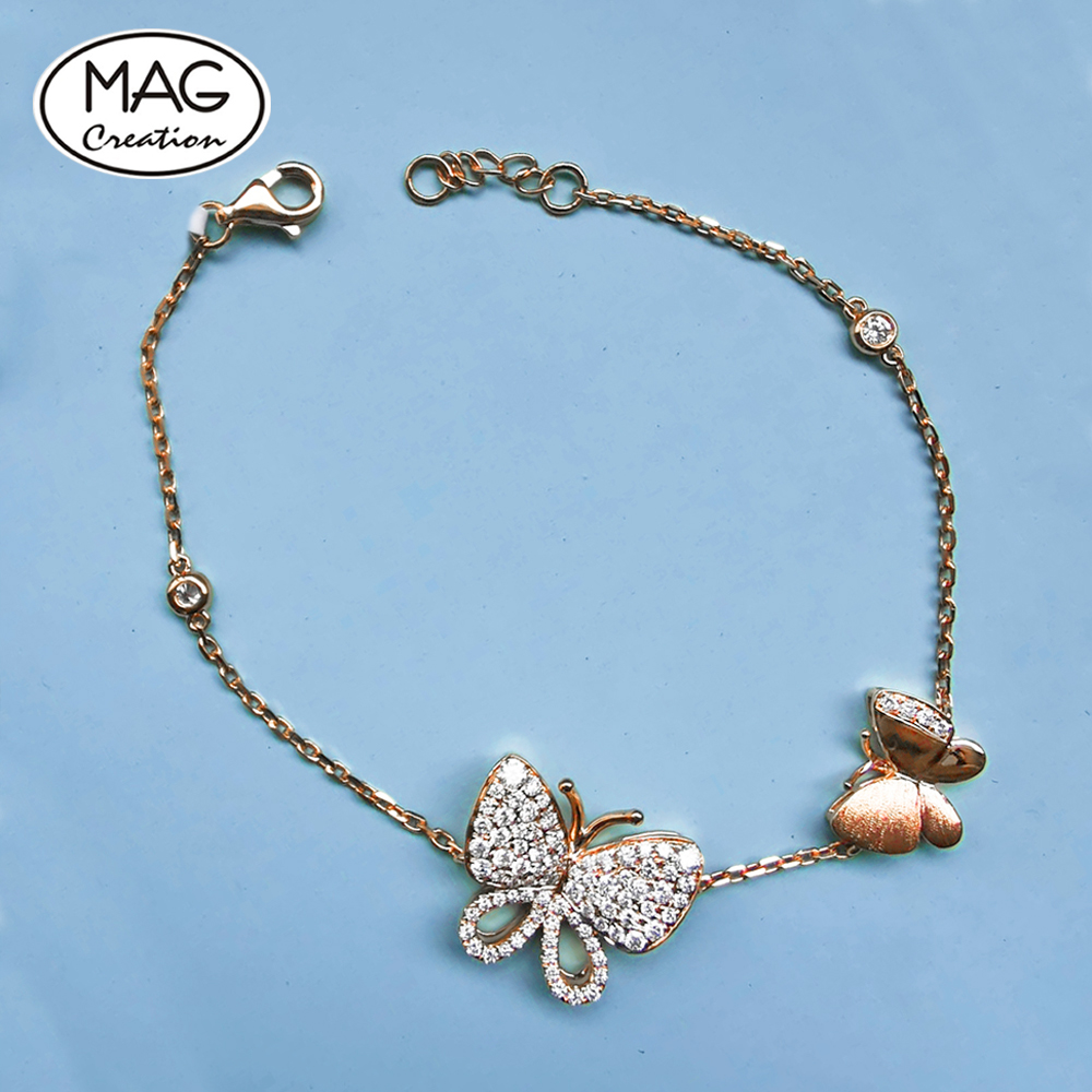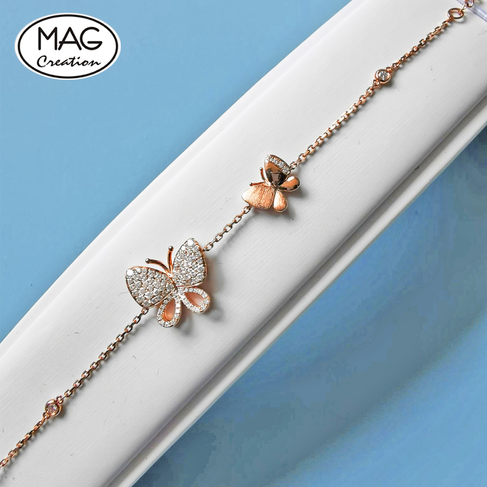 Love Legend Collection:18K Gold Diamond Bracelet w/ 2 Chasing butterflies
