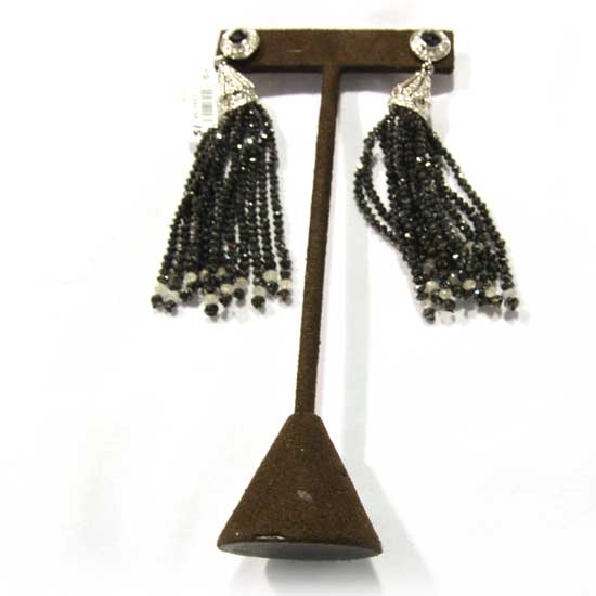 The ladies' drop earring dazzles with a unique tassel design on an 18K gold setting. Enchanting black diamond beads dangle and radiate brilliantly with every movement. Dress up your evening dress with the 18K gold diamond earring.