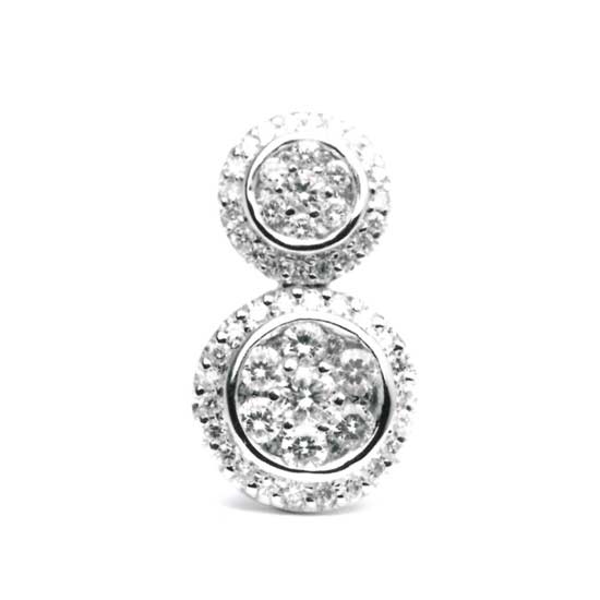 The ravishing dangling earrings are exquisitely crafted with 18K white gold, emitting perfect shine with excellent radiance. Meticulously set with an extensive amount of twinkling diamonds, these round-shaped earrings take your breath away with their irresistible beauty. Show your love to your special one with these dainty diamond earrings.