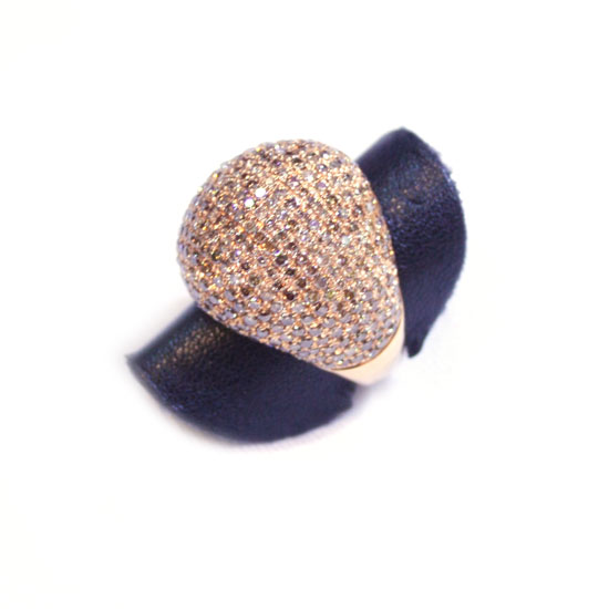 This dazzling ladies' finger ring showcases an 18K gold setting. Topped with twinkling diamonds, this beautiful ring sparkles proudly in all directions. Be the center of attention with this diamond ring wrapped around your finger.