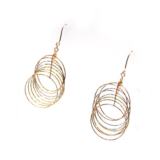 The featured pair of 18K gold earrings is chained with gold rings for a sophisticated and 3D appearance. The fine gold construction flaunts a shiny look with exceptional elegance. This pair if gold earrings is a chic item to match young ladies' outfits.