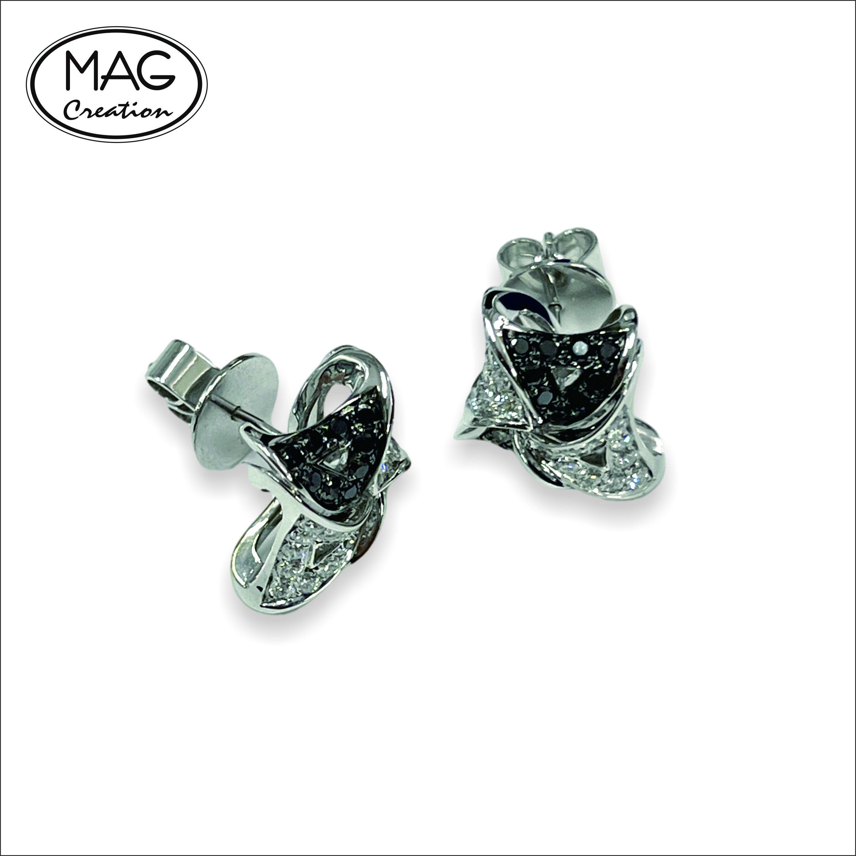 18K Gold Designer Silvia Collection Natural Black Diamond Natural Diamond Earrings