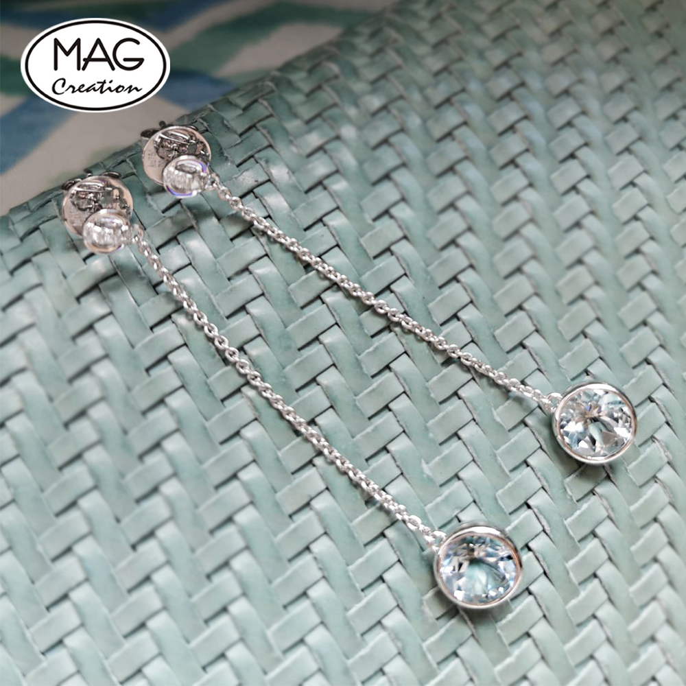 18K White Gold Natural Aquamarine Natural Diamond Earrings