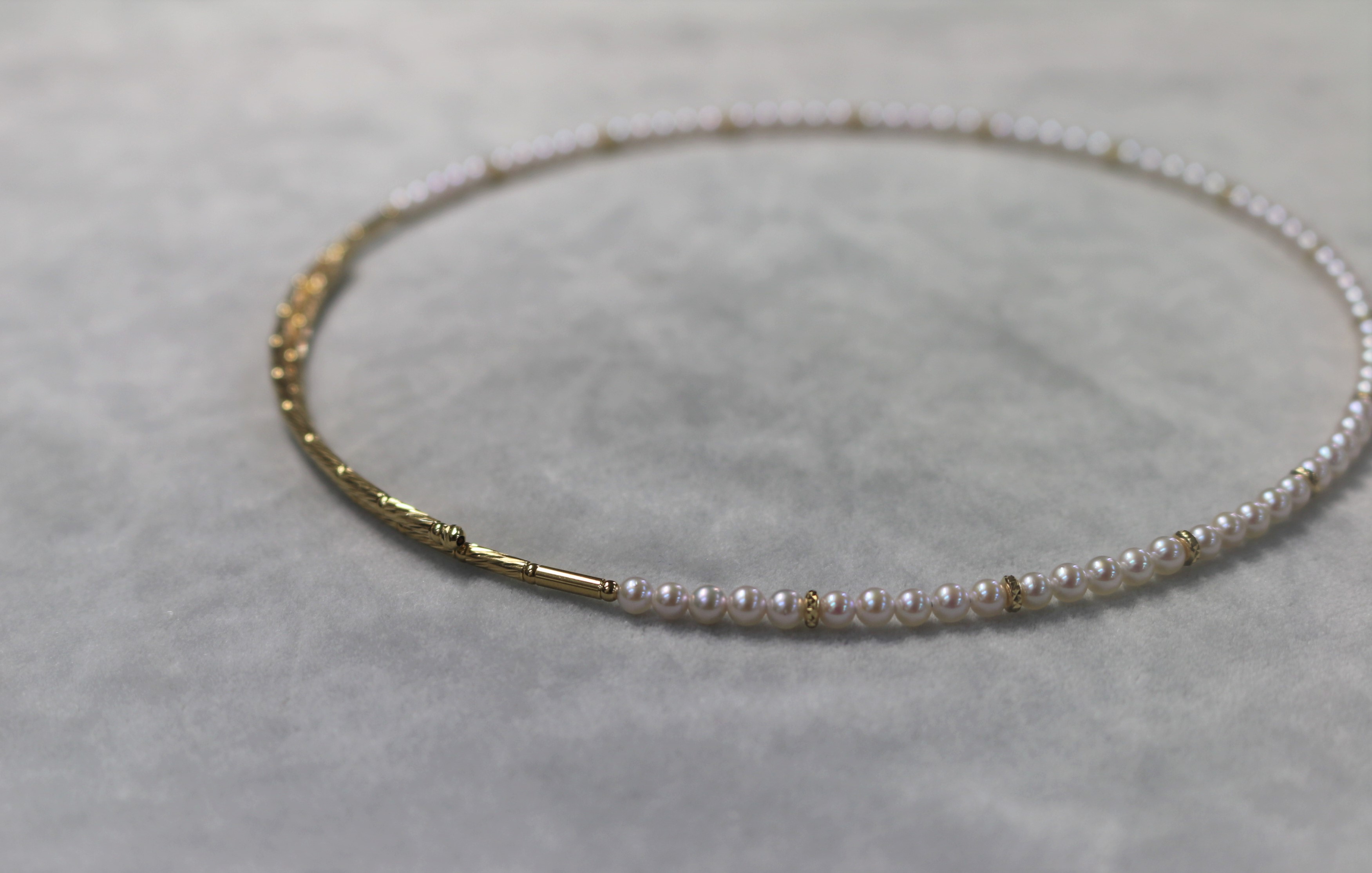 Pictured here is an exquisite design of a necklace made of 18k gold. The complicated and delicate design showcases excellent workmanship. The low-profile design makes it a great piece for daily wear.
