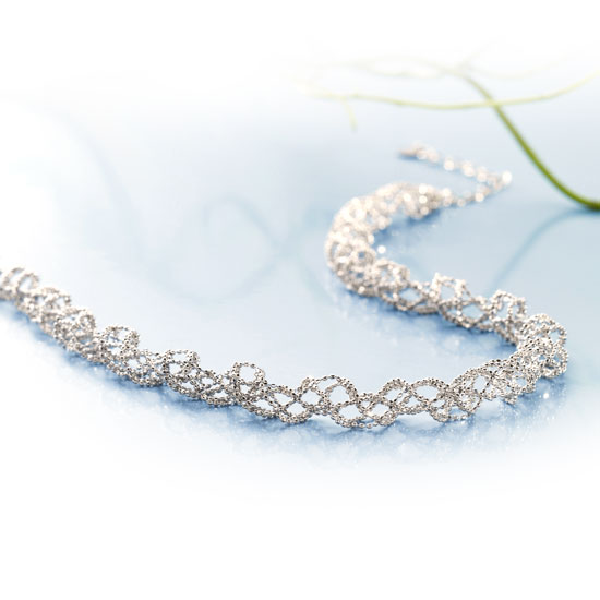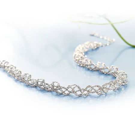 This curvy necklace flaunts an elegant touch with its platinum construction. The necklace is coated with 18k white gold for an extra dose of luxuriousness. It can be easily paired with diamond jewelry and silver jewelry.