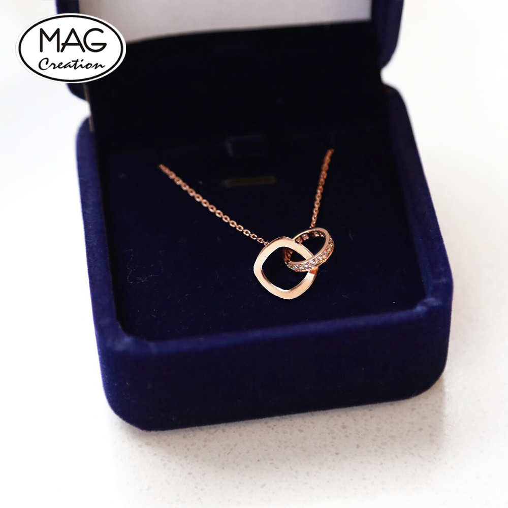 18K White Gold Loving Couple Duet Diamond Circle+Square Charm Necklace