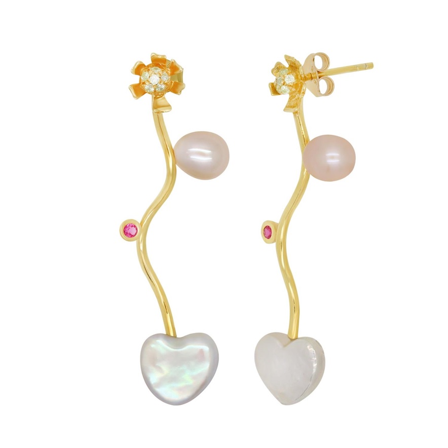• Material: 18K gold plating, silver, freshwater pearls, cubic zirconias.