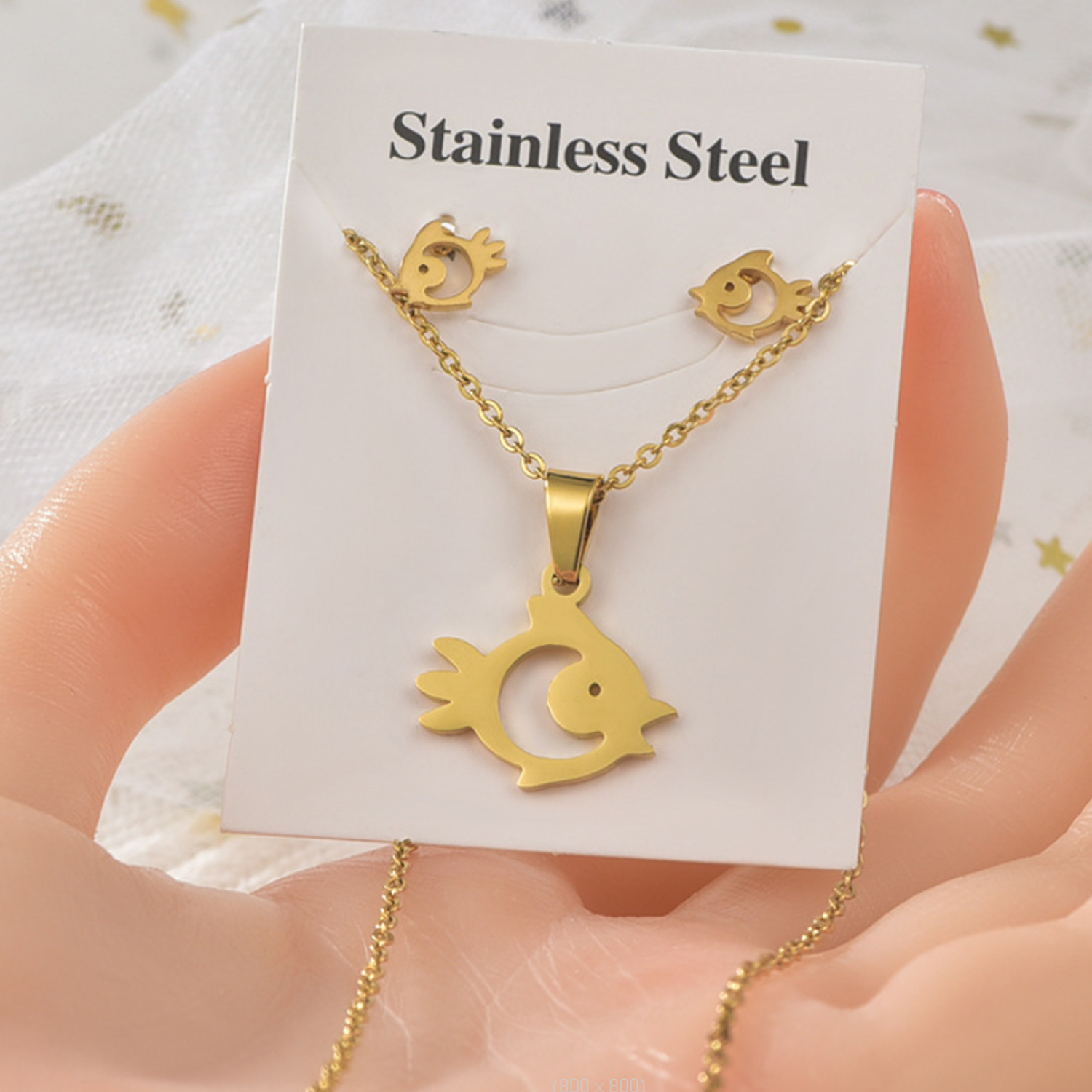 18K Gold Plated Stainless Steel fish shape Necklace Earrings Set