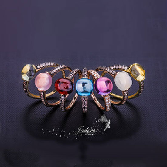 - With colored stones and brown diamonds or colored stones and white diamonds.