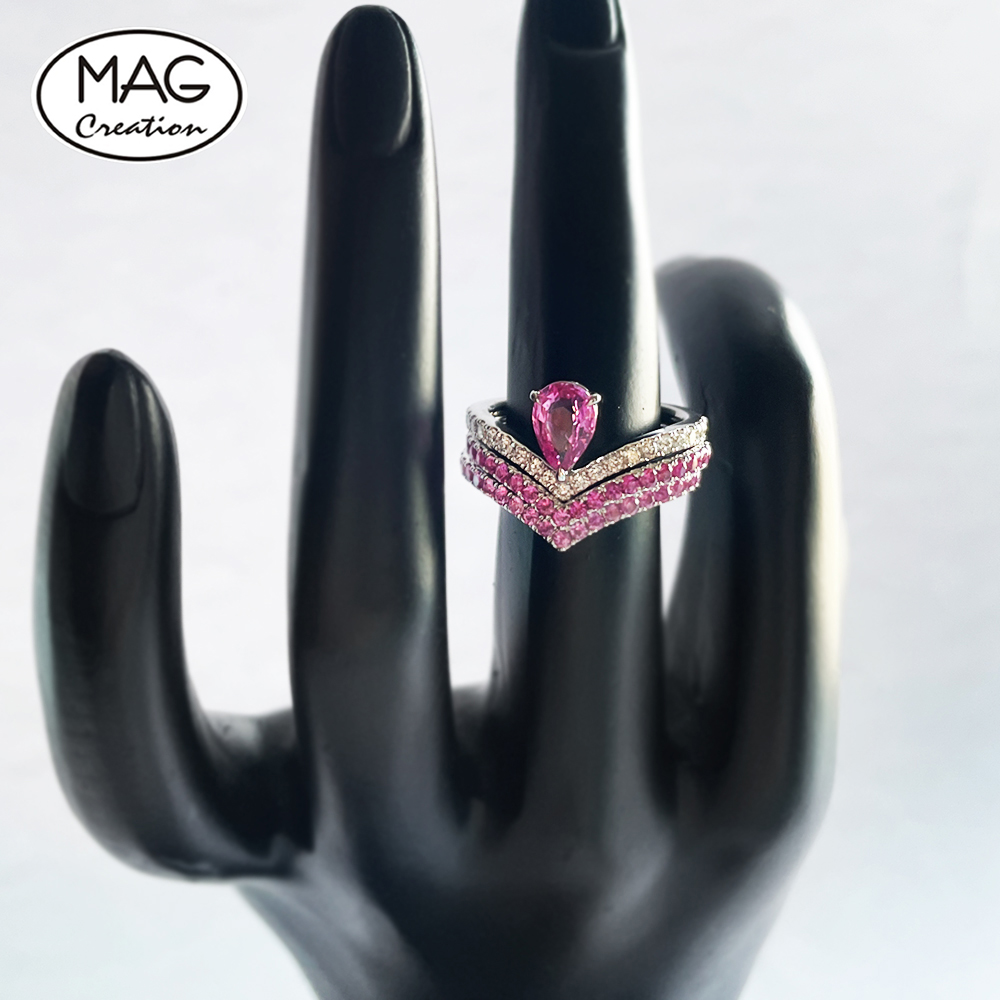 18K white gold Pear Cut Natural Pink Sapphire Natural Diamond Ring Set