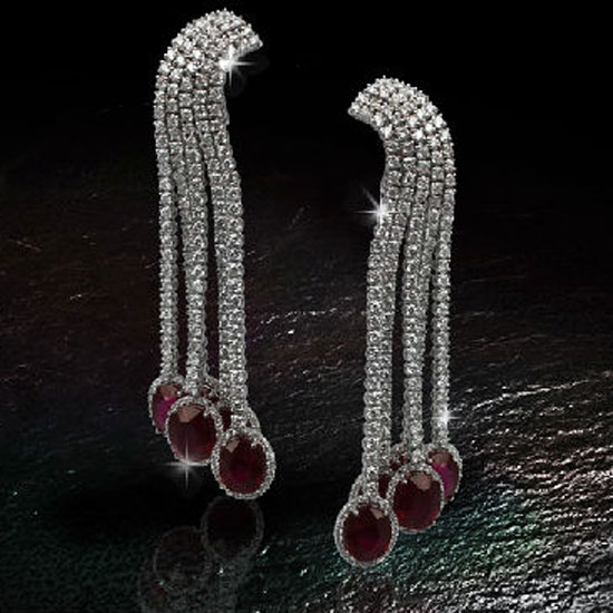 This is a pair of stylish earrings with a fashionable and modern design. The earrings are crafted with sparkling rubies on the 18K gold setting for added elegance. This pair of ruby earrings makes a pretty way to complement your chic look.