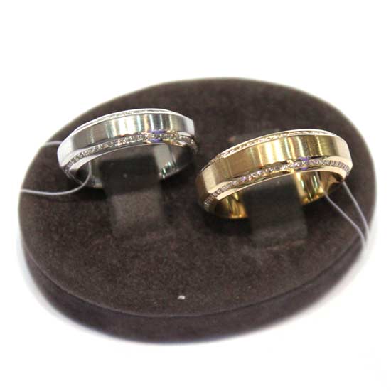 The wedding ring set is thoughtfully completed with a men's ring and a ladies' ring. The single-band design without extravagant decorations makes them perfect for complementing engagement rings. Subtly set with sparkling diamonds, this wedding ring set symbolizes a sense of eternal love. Make your faithful commitment to the love of your life with this sincere wedding ring set.