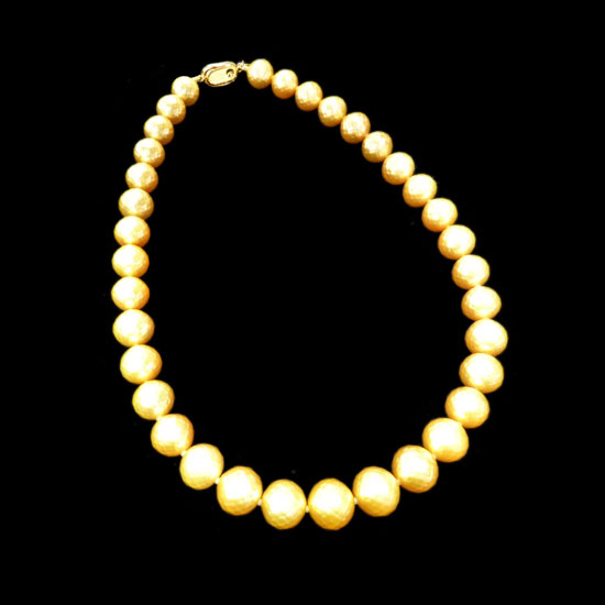 This beaded south sea pearl necklace is indescribably gorgeous. Each pearl exhibits a warm and saturated saffron color. This necklace can wonderfully adorn your neck with its natural luster.