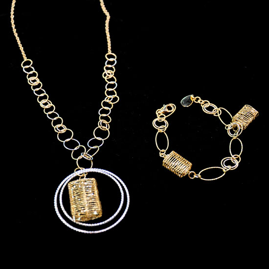 This is a set of 18K gold jewelry with a necklace and a bracelet. This classic jewelry set is exquisitely made with intricate details in a delicate chain design. Complement your everyday wear with this deluxe gold jewelry set.