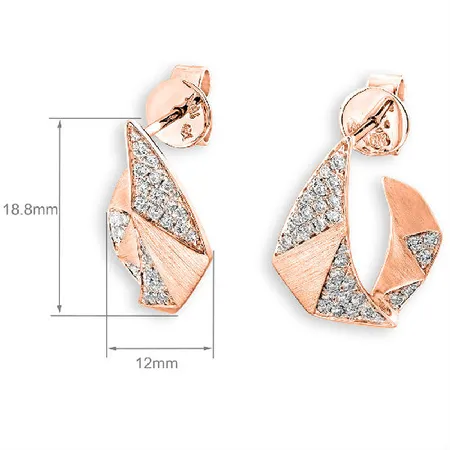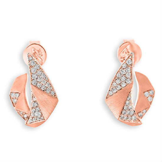 18K Rose Gold Brush Finish Geometry Shape Diamond Earring