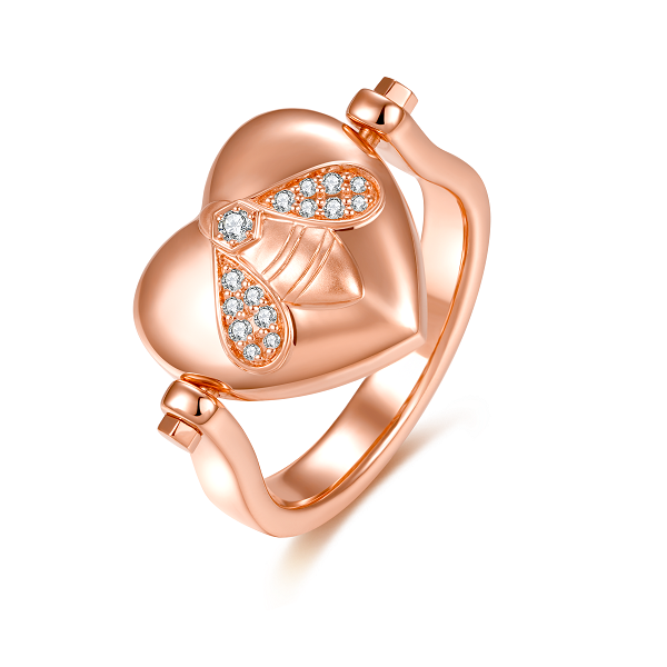 This unique ring is crafted from warm 18K rose gold and designed as a sweet symbol of love. Shaped like a heart, its surface is covered with a delicate honeycomb pattern, completely set with sparkling diamonds that catch the light beautifully.