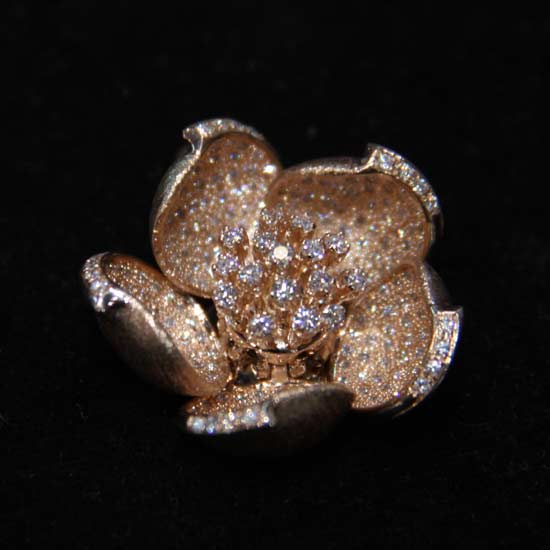 The rose gold pendant comes with a graceful floral design. 391 pieces of exquisitely cut diamond are crafted robustly on the petals and stigma for lasting glamor. The stunning pendant boosts the value of jewelry items like necklaces.