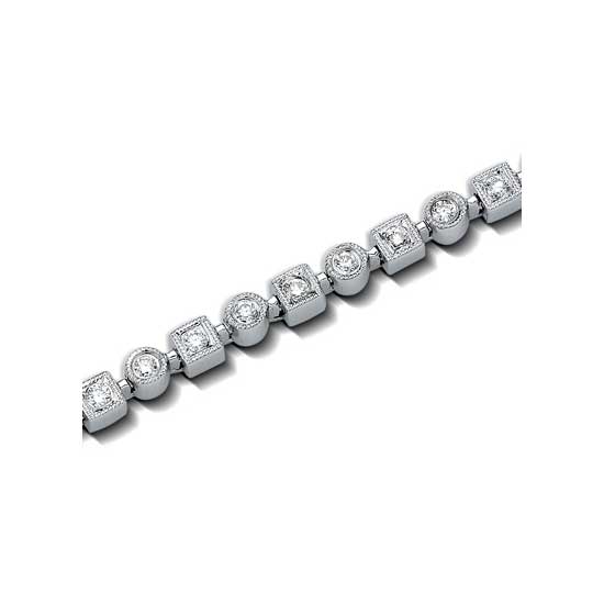 Glitter with glamor with the featured diamond bracelet on your waist. Made of 18K white gold, the bracelet is a gorgeous jewelry item. The bracelet is decorated with sparkling diamonds that are square and round in shape.