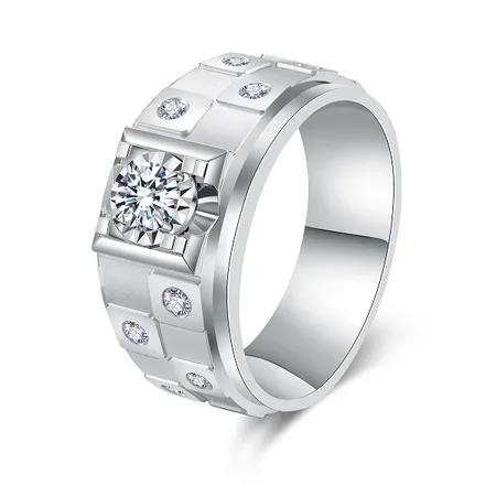 Designed for the modern man, this ring blends bold geometry with brilliant luxury. Expertly crafted in solid 18K white gold, it features a striking square setting that securely holds a prominent round-cut center diamond.