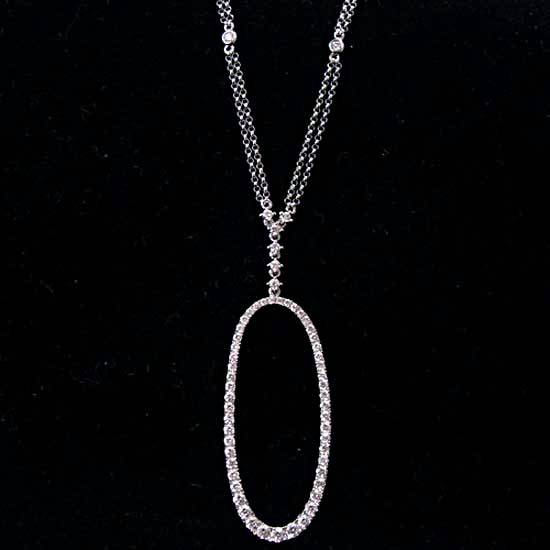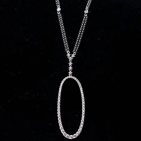 The 18K white gold diamond necklace boasts a simple and elegant design. The diamond-encrusted pendant offers brilliant sparkles. You will look stunning in this white gold diamond necklace.