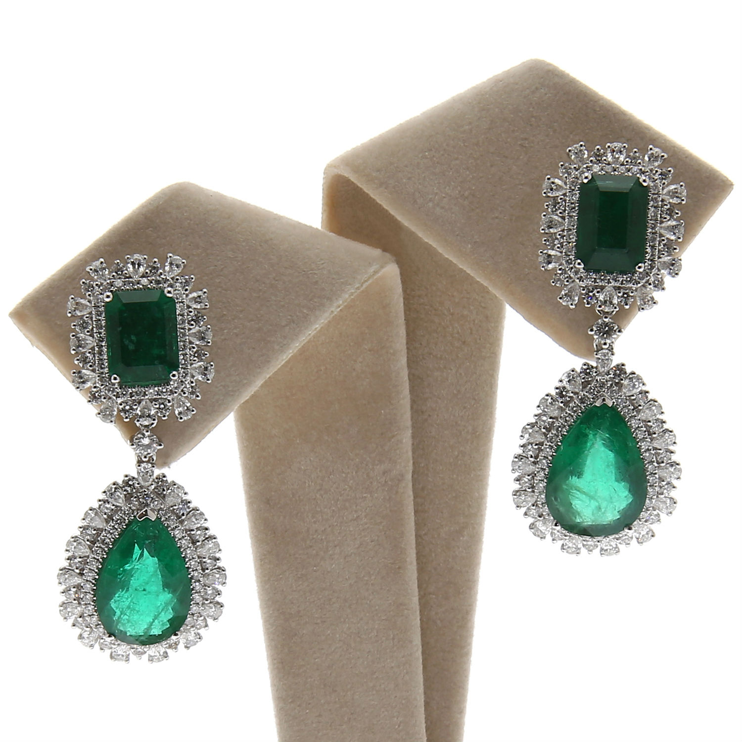 18K White Gold Emerald Earring with Diamond