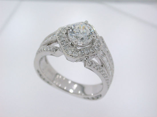 - Center 6mm CZ stone surrounded by a rhombus-shaped halo.