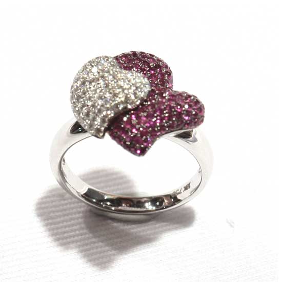 Highlighted here is a breathtaking finger ring designed for ladies. The 18K white gold ring is adorned with diamonds and pink sapphires. Add this finger ring to your jewelry collection.