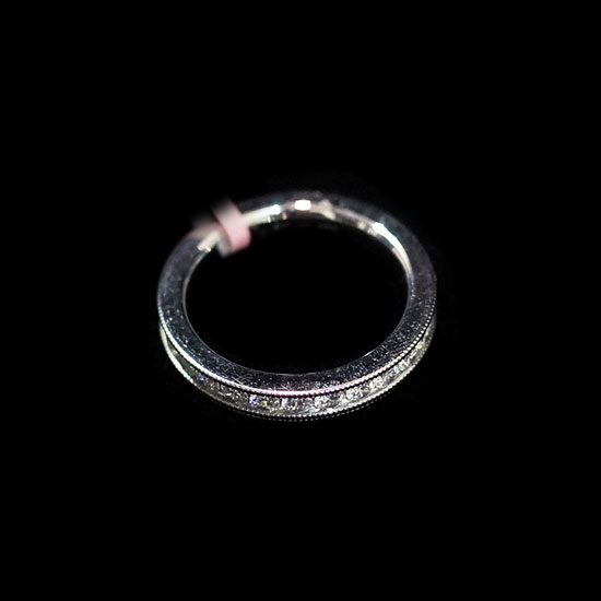 This is an 18K white gold ring that shimmers with a high-gloss finish. The allover dazzling diamonds add a touch of luxuriousness to the whole piece. This elegant ring is an ideal addition to complete your jewelry box.