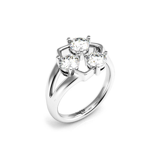 This is a revisited classic trilogy ring, with three stones positioned on an equilateral triangular base. The shank follows the shape of the top and forms a perfect circle. The white glitter of the sparkling stones can surely grace your finger.