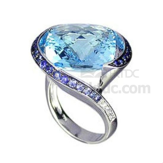 18K White Gold Ring Set With Blue Topaz, Blue Sapphire And Diamonds