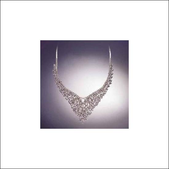 18k white gold necklace in a "Y" shape with many semi-mounting prongs.