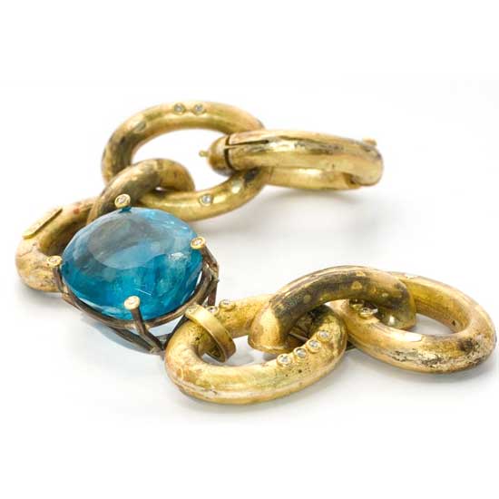 The ladies’ bracelet features a chain design in 18K yellow gold with shimmering diamond accents. The centered blue fluorite freezes your attention at first glance. Add a splash of color to your everyday ensemble with this fashionable bracelet.