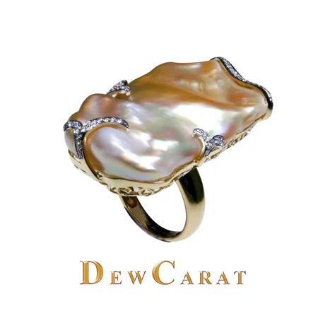 18K Yellow Gold Pearl Diamond Ring