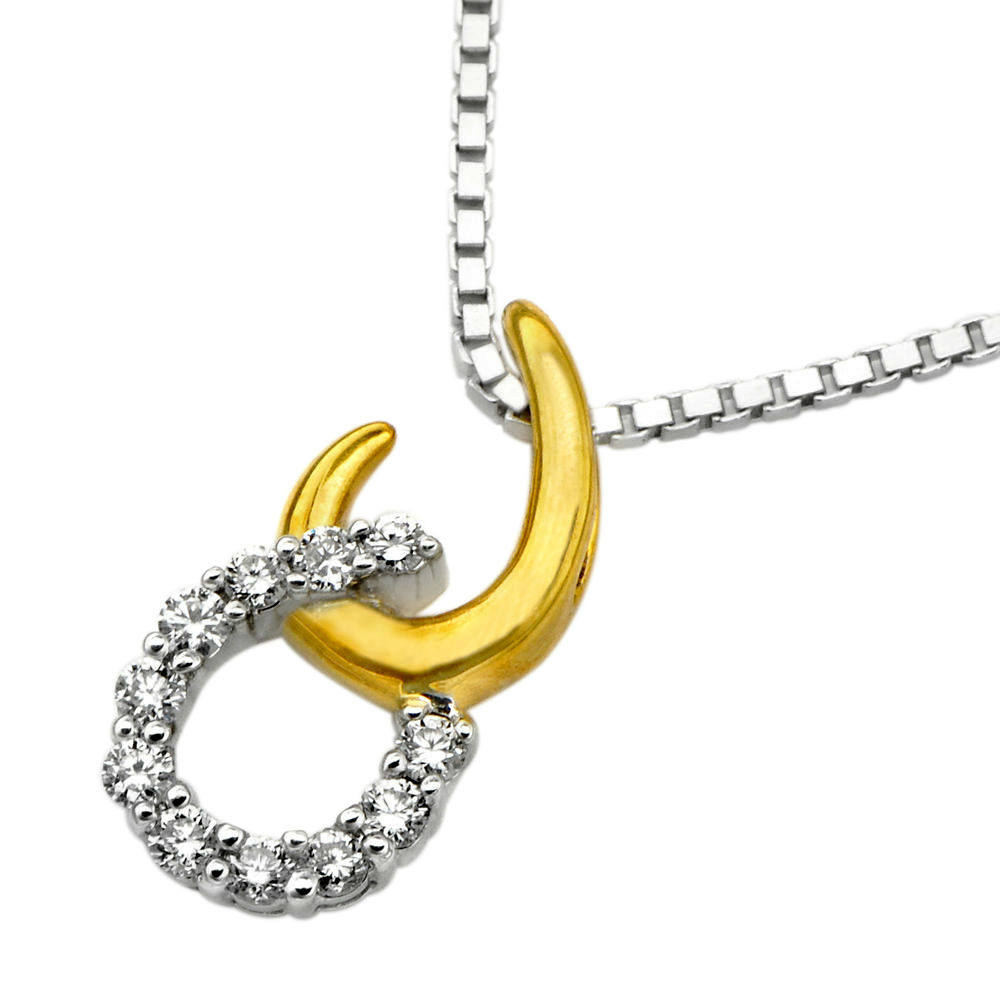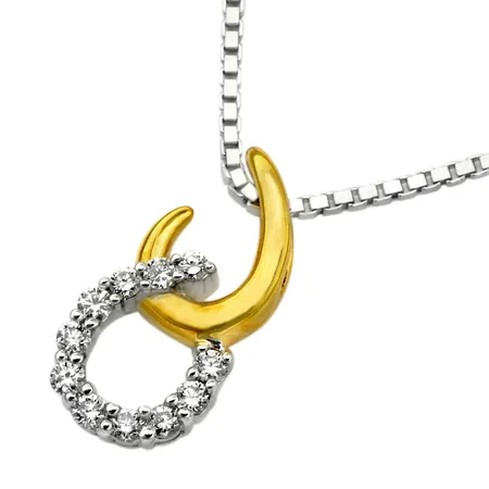 18K Yellow & White Gold Moon with Star Diamond Pendant