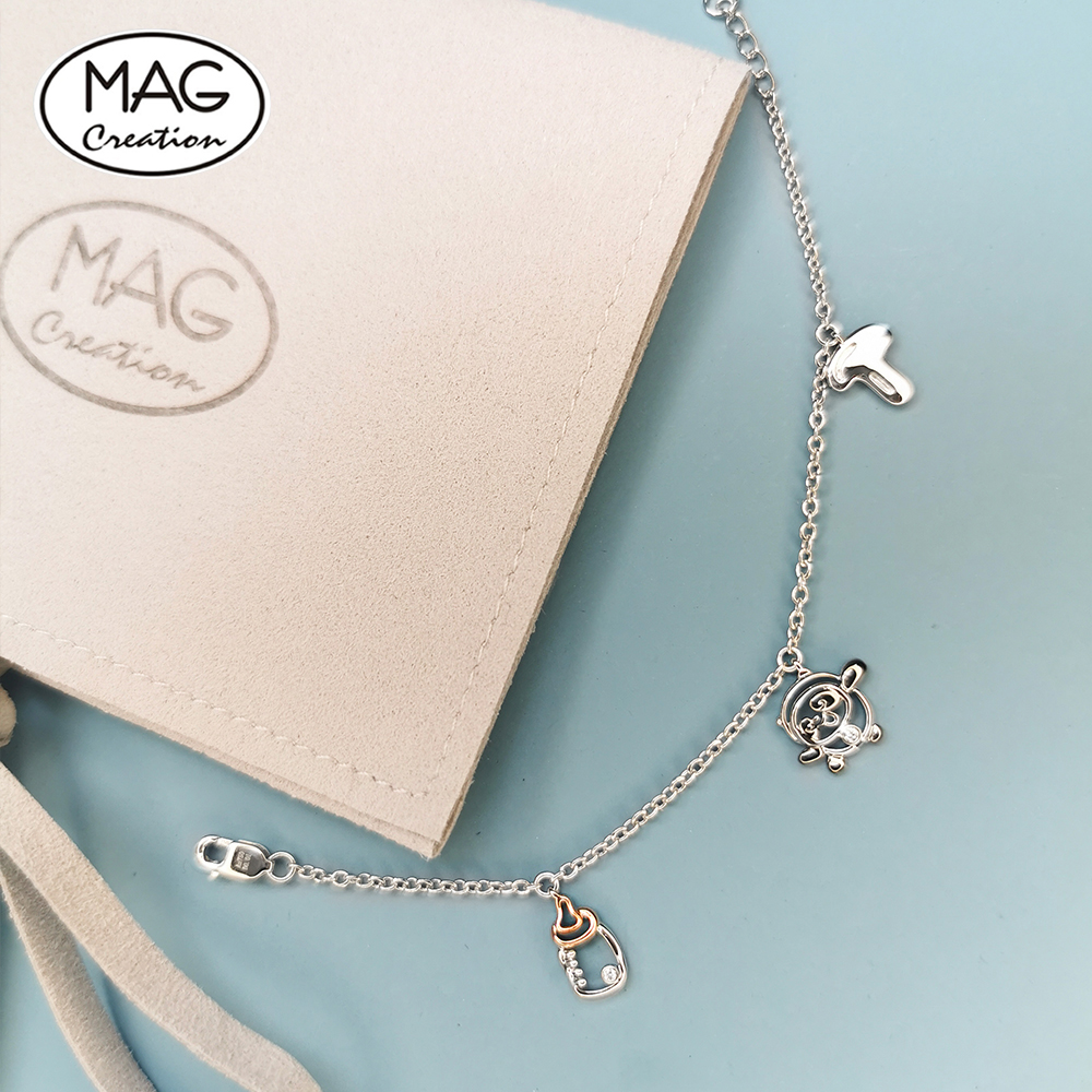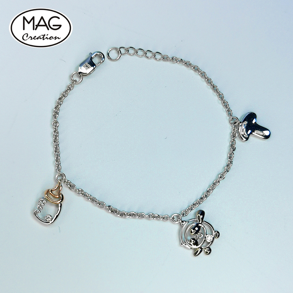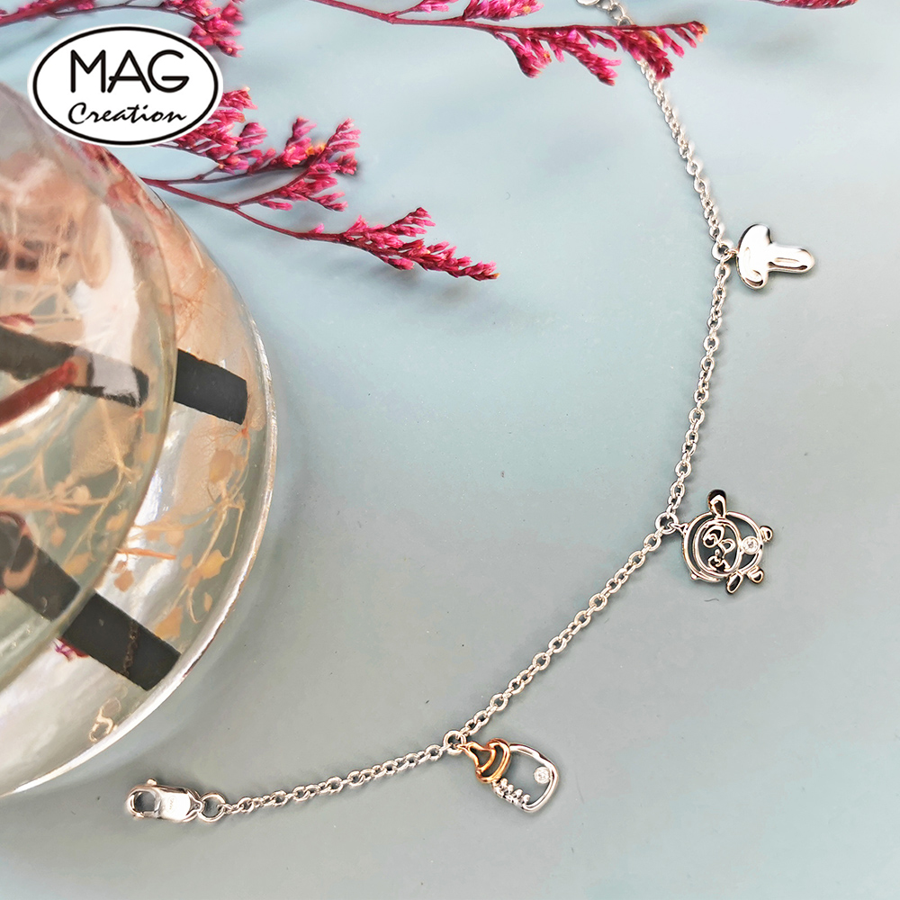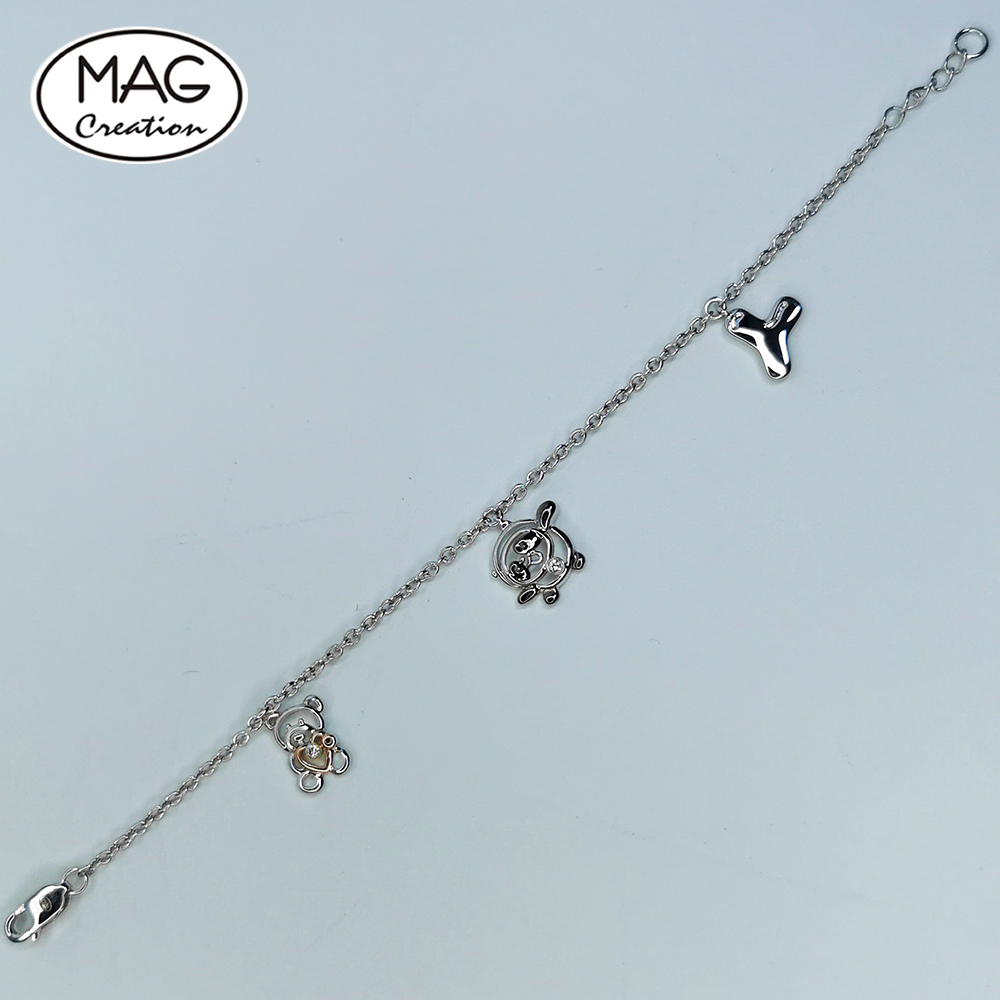 Little Sweetie BB Charm Bracelet: 18K gold, 2 Diamond Adorable Charms + 1 unique label alphabet