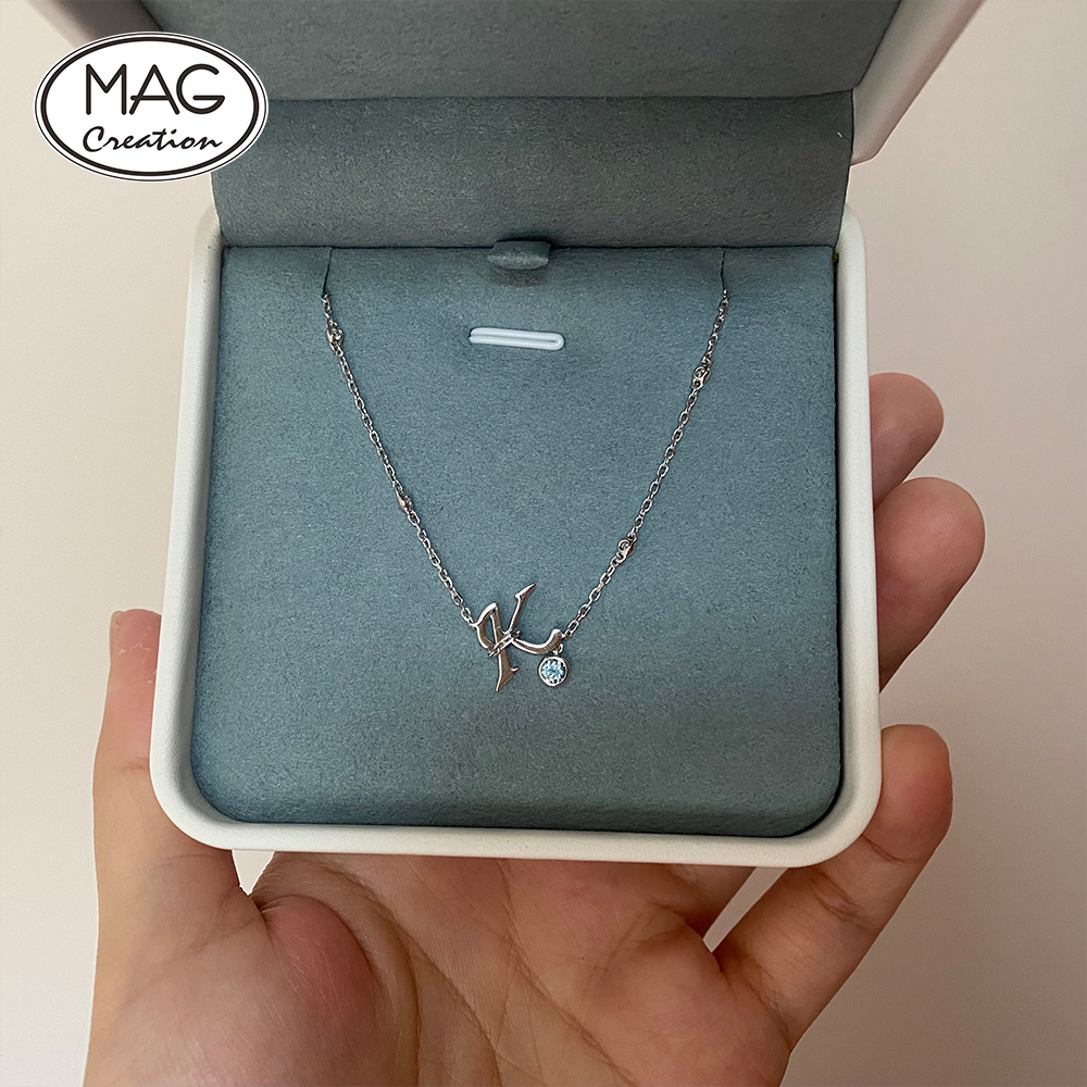 18K gold Diamond Bracelet with Unique Label "K" & dangling Aquamarine