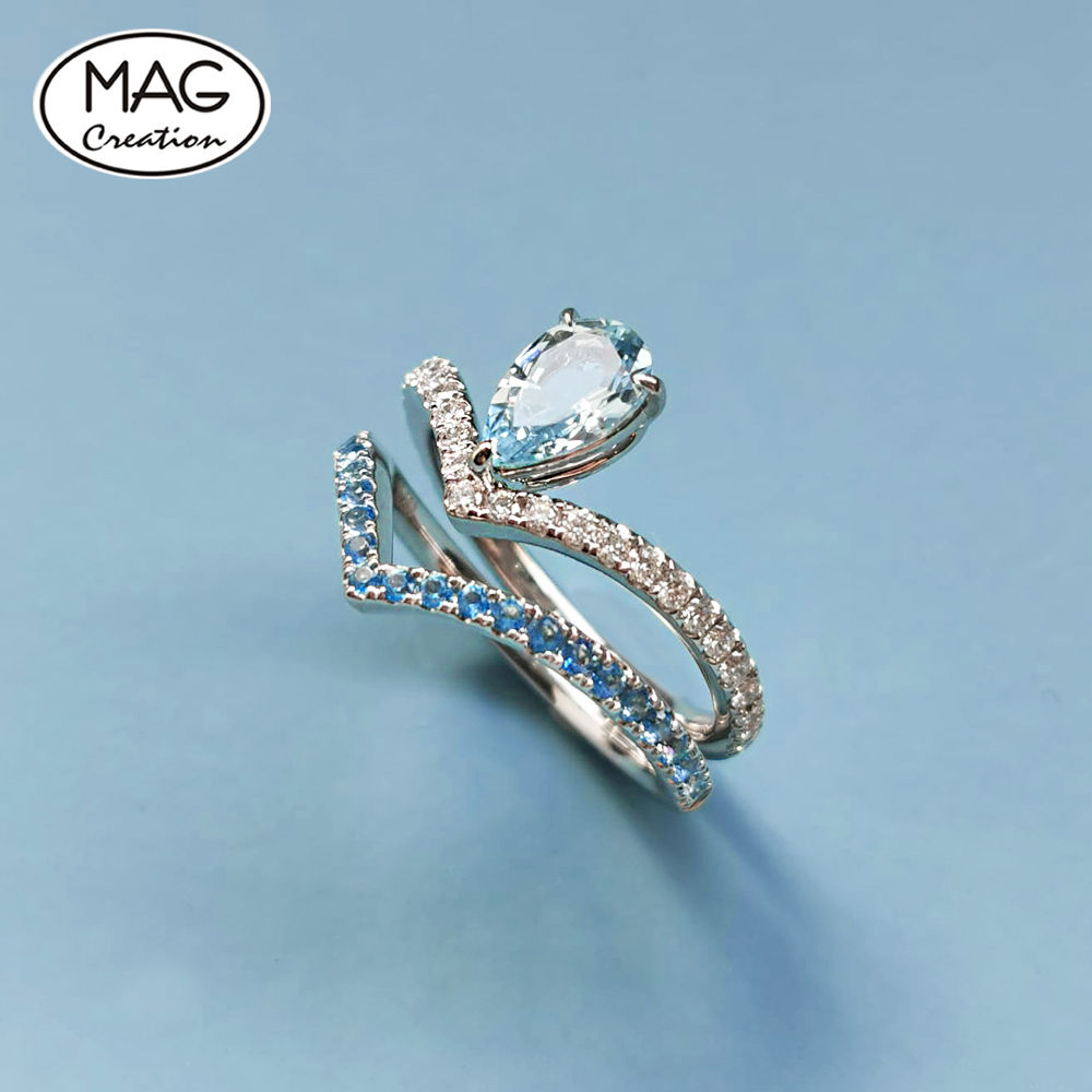 18K white gold Natural Aquamarine Natural Sapphire Natural Topaz Natural Diamond Ring
