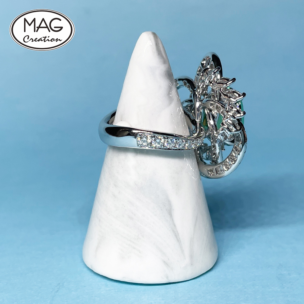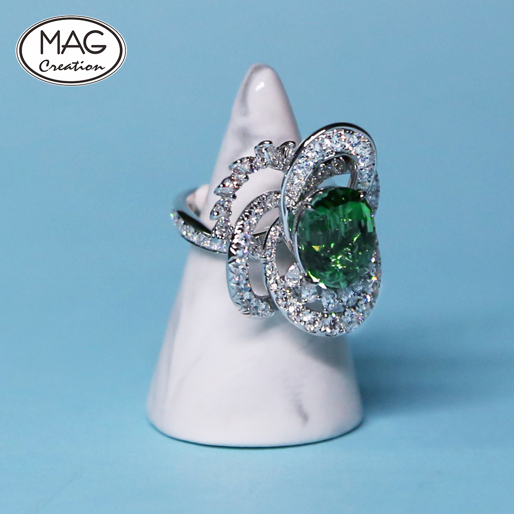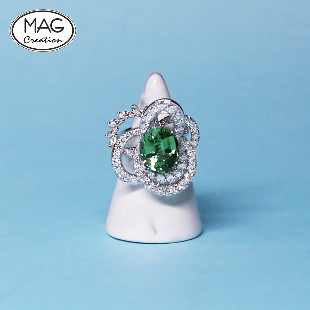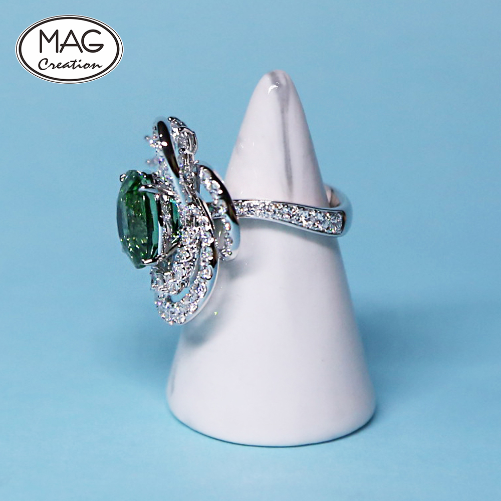 Elegant Design 18K White Gold 7.68ct Natural Green Tourmaline Natural Diamond Ring