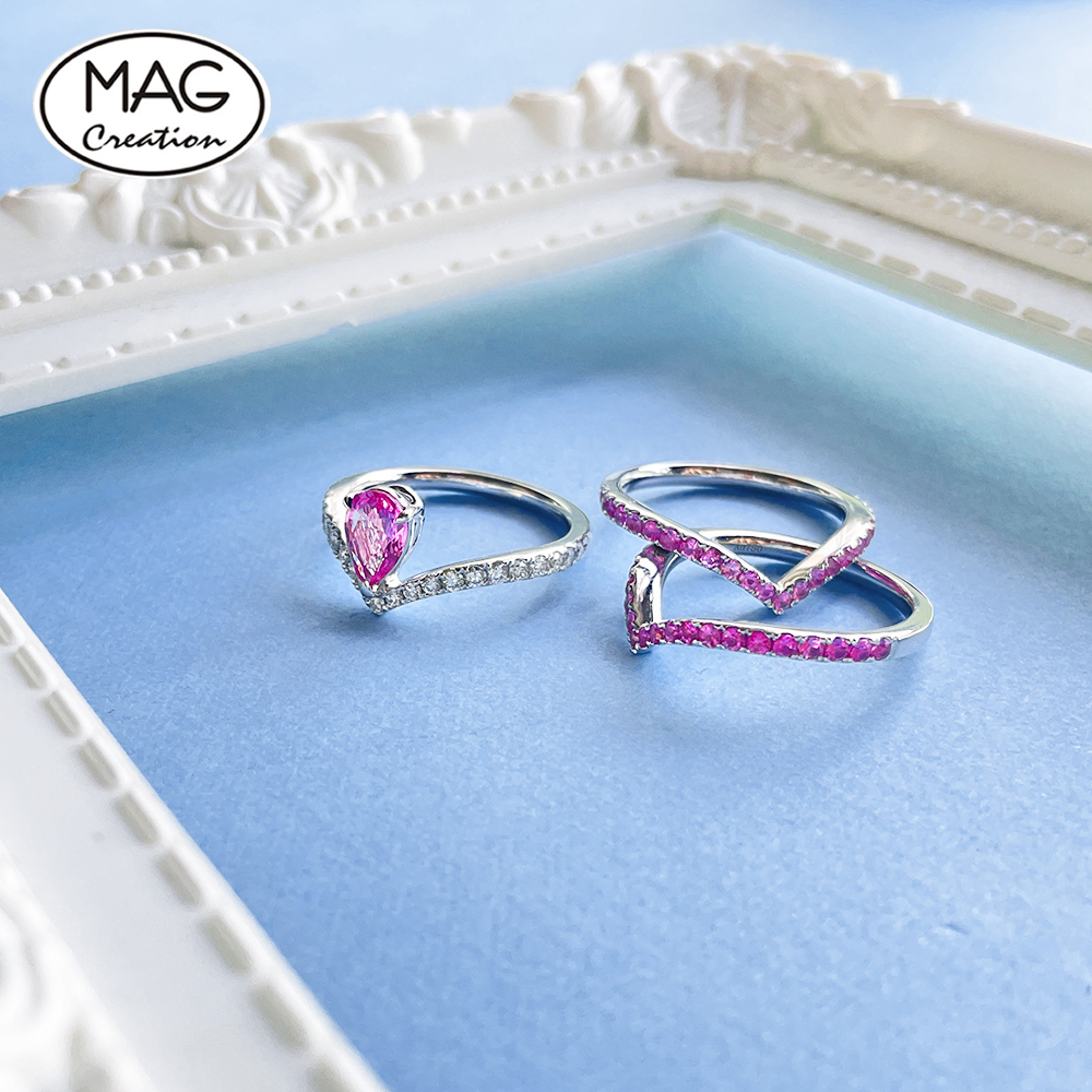 Elegant Crown Ring Set: 18K White Gold Natural Fancy Color Pear Cut Sapphire Ring Set of 3
