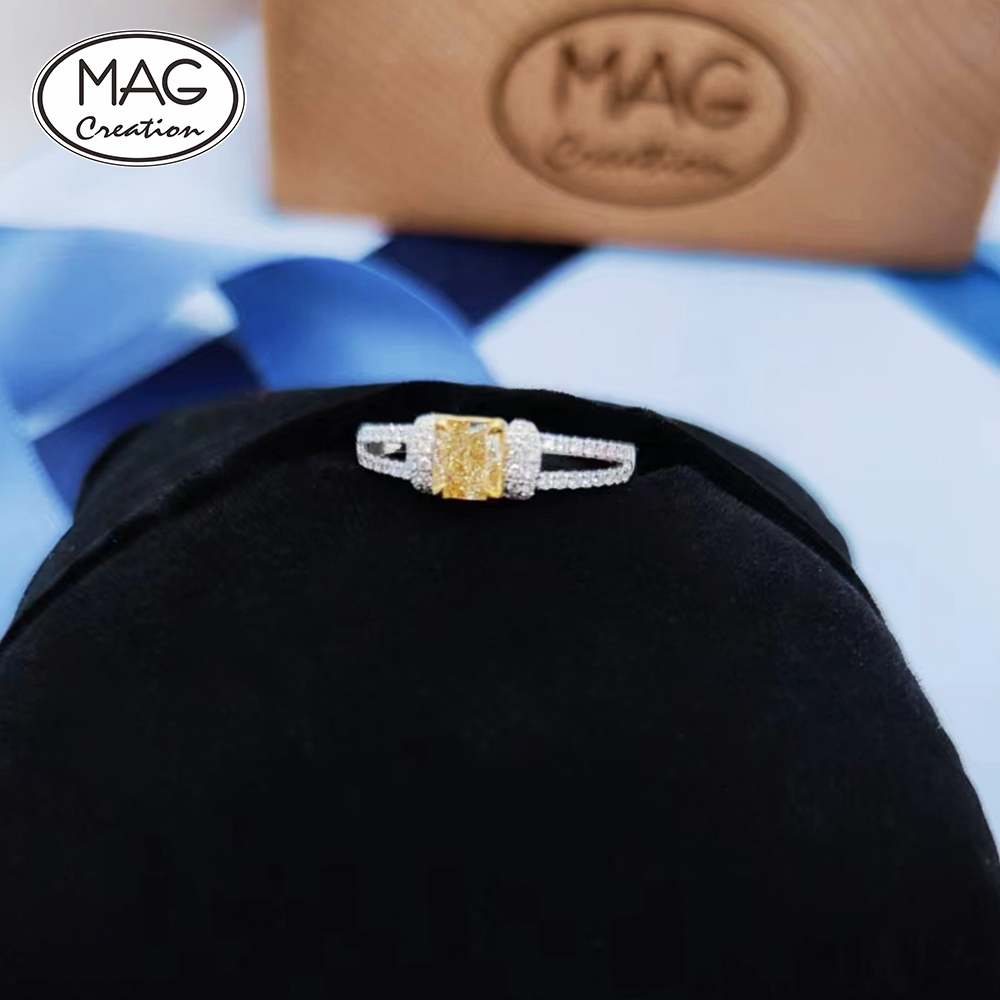 18K white gold, 0.50ct natural yellow Diamond, 0.183ct natural Diamond