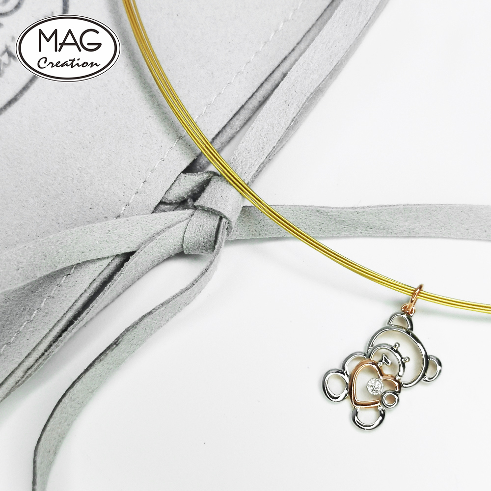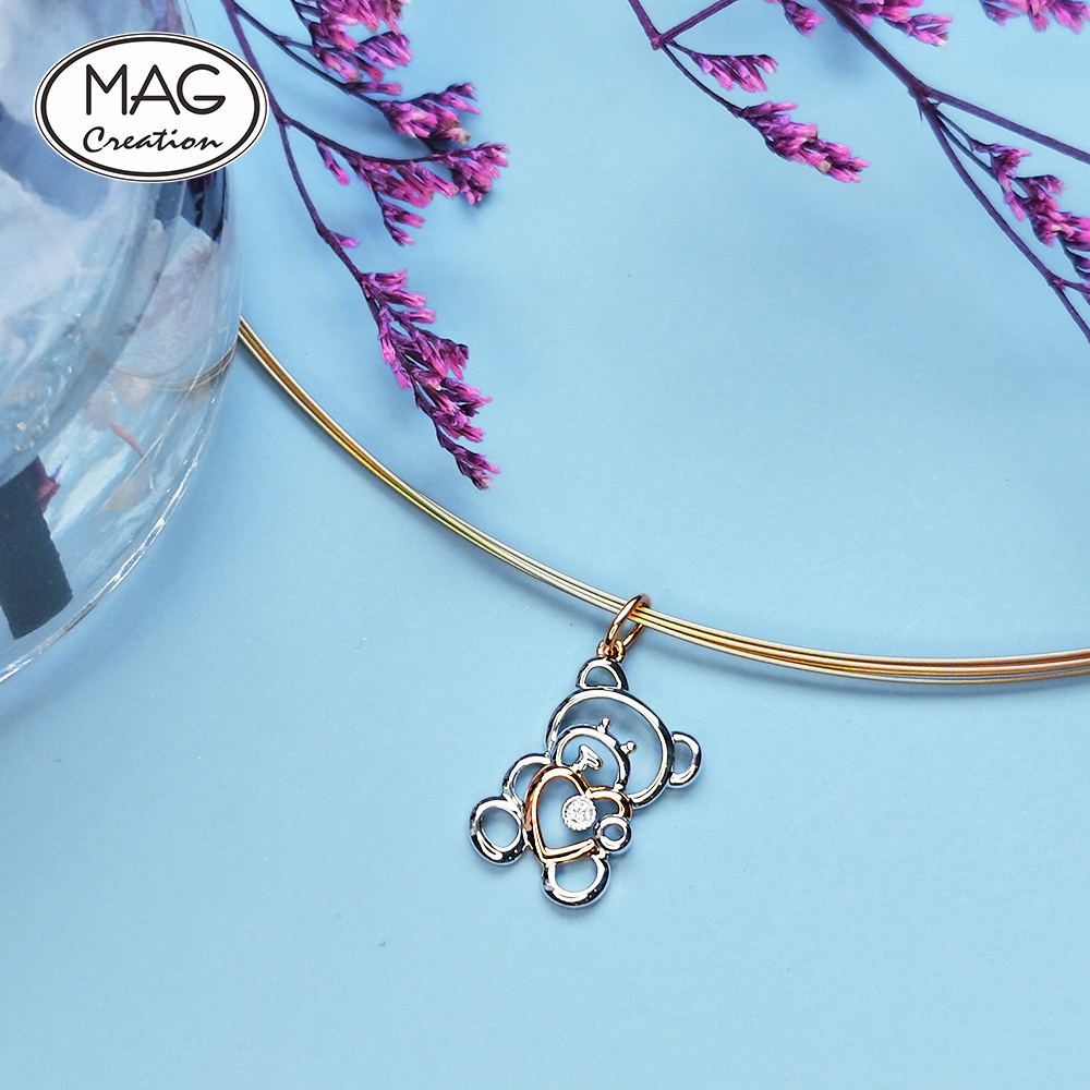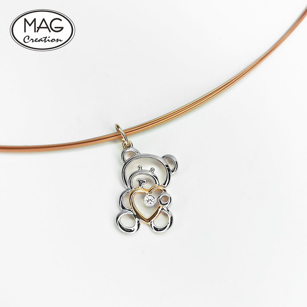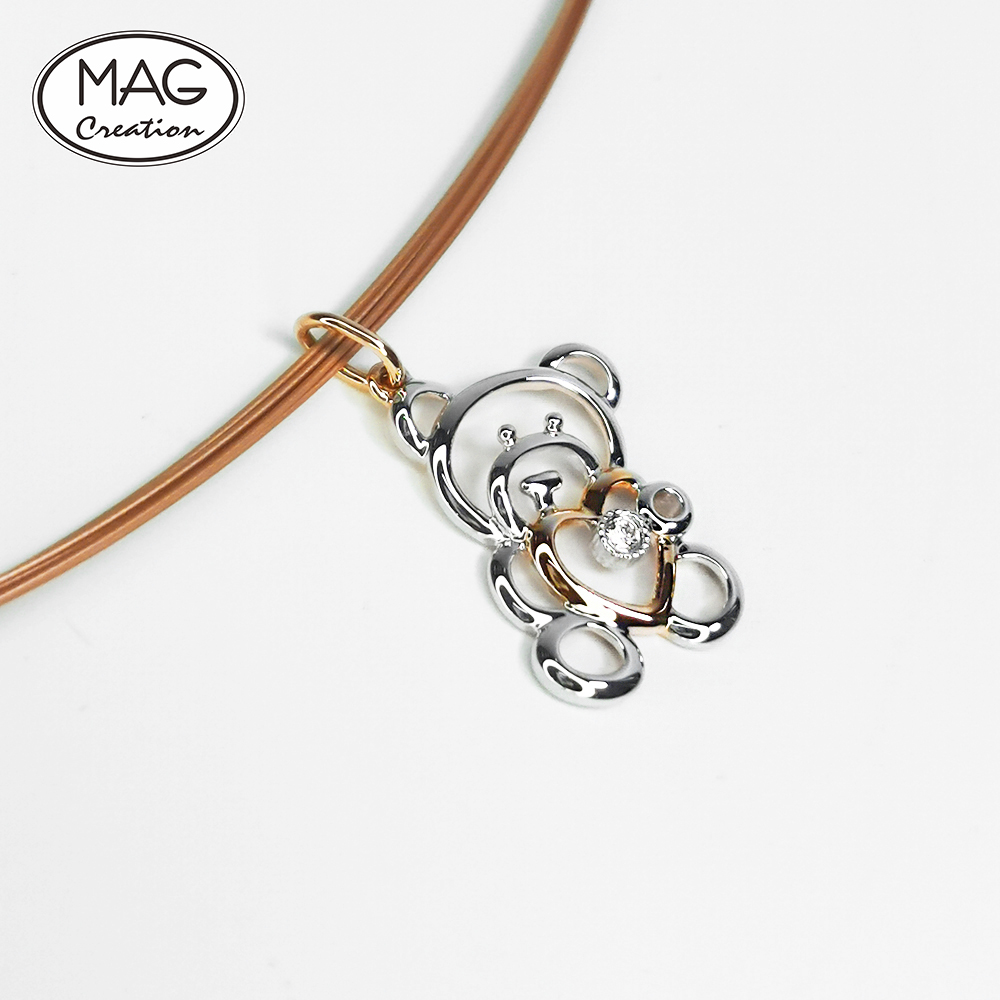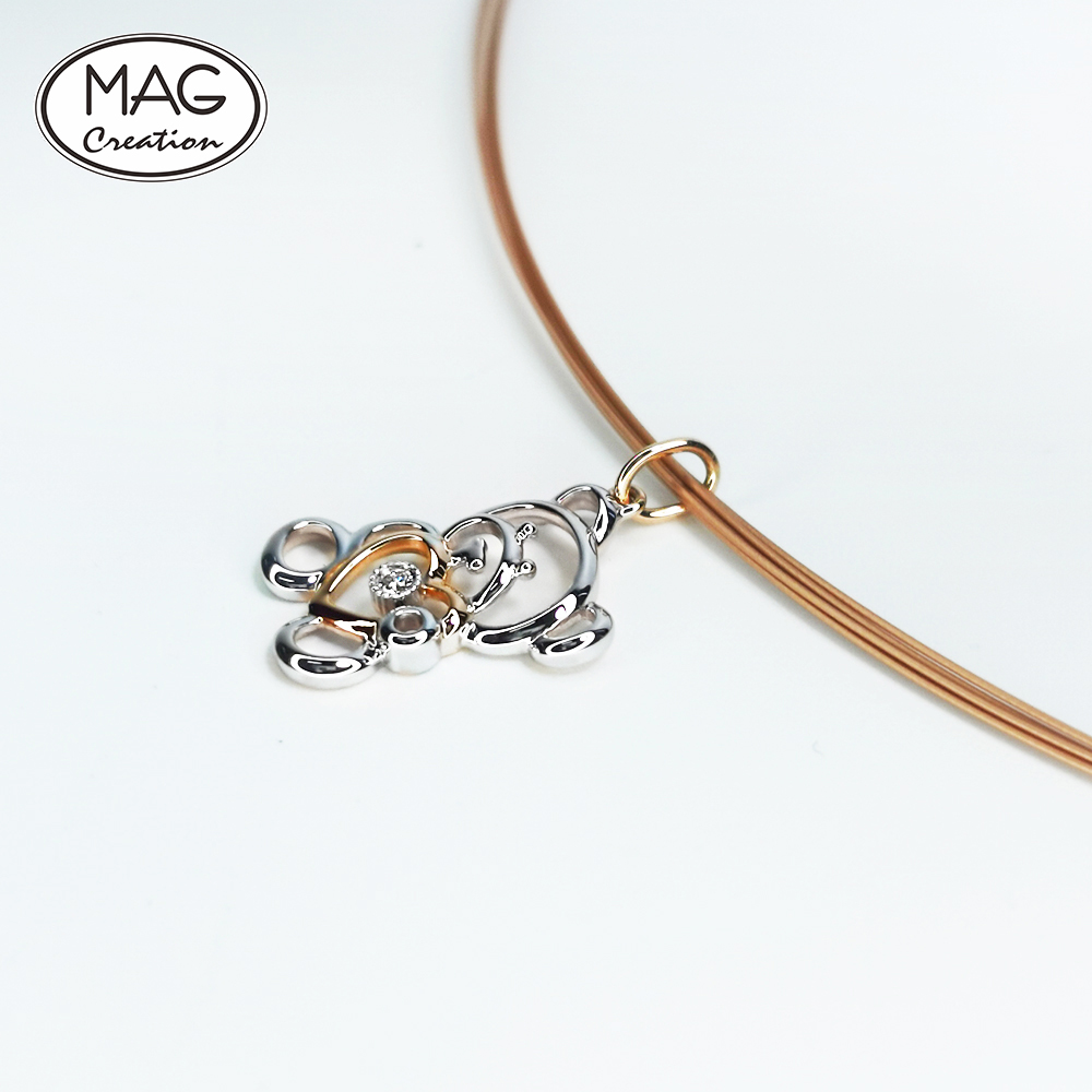 Cute trendy 18K gold natural Diamond Bear pendant
